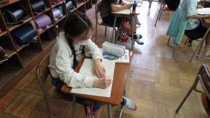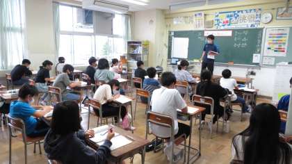 運動会の練習の合間にも学習を頑張る姿が見られました。黒板の問題に真剣に取り組む姿が見られました。