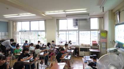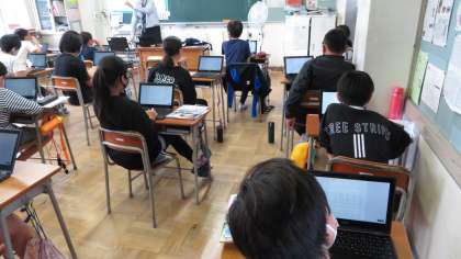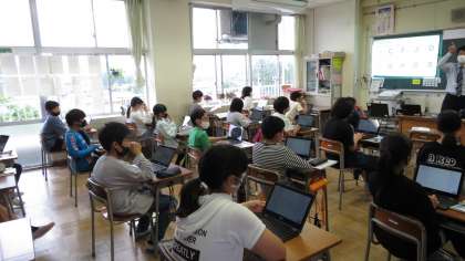外国語活動では、パソコンを使用しながら外国語に親しみました。どの子も積極的に活動する姿が素敵でした。