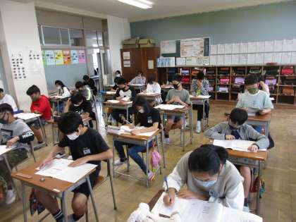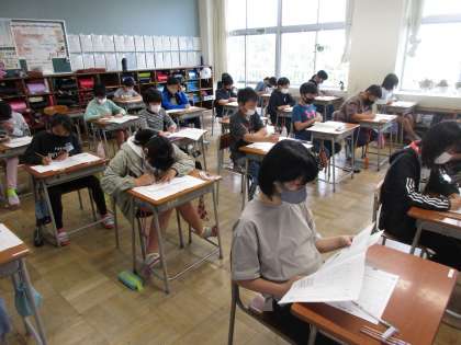 5/27に、全国学力学習状況調査を行いました。みんな集中して取り組みました。