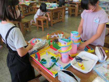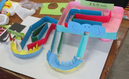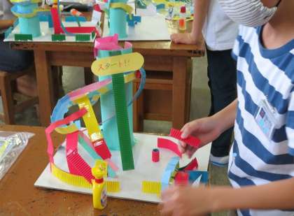 4年生 コロコロガーレで楽しもう! 公開日 2021/06/04 更新日 2021/06/04 第4学年 図画工作科の時間に、段ボールや工作用紙を使って、ビー玉が転がるコースを作りました。筒型の台の上から、滑り台型のコースや螺旋型のコースなど、作りたいイメージをどんどんふくらませていきました。ビー玉が出来上がったコースを転がっている様子にみんな歓声を上げていました。デザインのおもしろさやコースの複雑さなど、子供たちの創造力がよく表れた作品に仕上がりました。