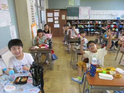 3年生 お弁当 公開日 2021/06/04 更新日 2021/06/04 第3学年 今日は、あいにくの天気だったので、教室でお弁当を食べることになりました。おうちで作ってもらったお弁当を喜んで食べる子供たちです。