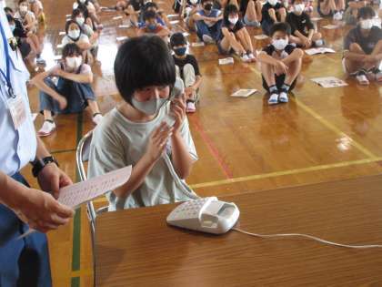6年生 BFCバッジ授与式・防火教室 公開日 2021/06/14 更新日 2021/06/14 第6学年 消防の方を招いてBFCバッジ授与式を行いました。みんなバッジを胸に着けて、地域の防火や防災に向けてがんばっていこうという思いを高めていました。防火教室では、119番通報体験をしました。