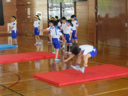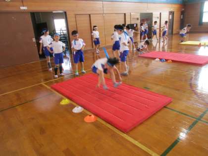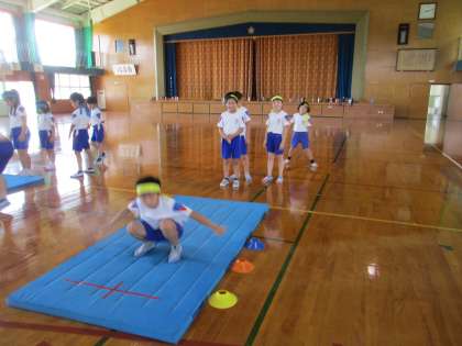 3年生「立ち幅跳びの練習!」 公開日 2021/06/17 更新日 2021/06/17 第3学年 上体おこしの後は、立ち幅跳びの練習をしました。子供たちは、1、2、3のリズムで大きく腕を振ってジャンプすることを意識しながら、何度も練習に励んでいました。