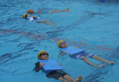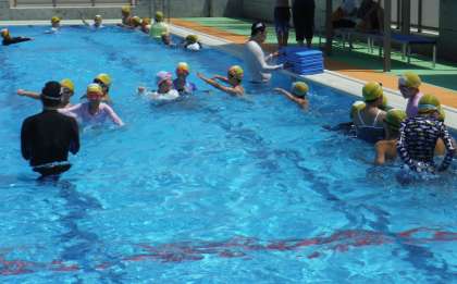 気持ちのよい晴天の下、水泳教室2日目がありました。昨日に引き続き、JSSスイミングスクール本郷のコーチの皆さんに教えていただきました。二日間の中で、泳ぎに苦手意識を感じている子供たちは、水に浮くことに慣れ、泳ぎの基本を教えていただきました。またうまく泳げない子供たちは、とてもきれいなフォームで、滑るように泳ぐようになり、急激な成長に目を見張りました。泳ぎに自信のあった子供たちは、四泳法を全て教えていただき、この夏には、さらなるレベルアップを目指して練習することを心に誓っているようでした。二日間のJSS本郷のコーチの皆さんの練習によって、プールをさらに好きになった子供たちでした。