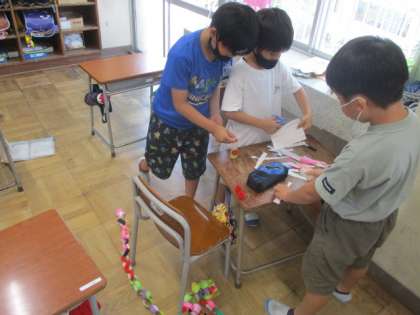お楽しみ会に向けて、仕事を分担して準備を進めています。