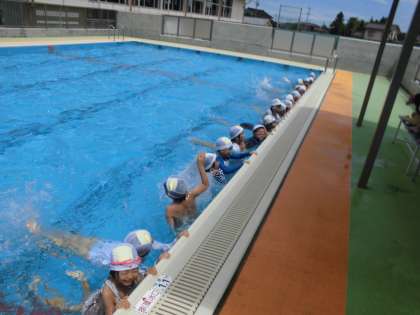 1年生 プール学習 公開日 2021/07/16 更新日 2021/07/16 第1学年 今日は気持ちのよい日で、子どもたちは嬉しそうにプールに入っていました。バタ足の練習をしたり、だるま浮きにチャレンジしたりしました。