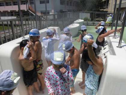 1年生 冷たい水が気持ちよかったよ! 公開日 2021/07/20 更新日 2021/07/20 第1学年 とても暑い一日でした。 水温も気温も高かったため、短時間で水遊びをしました。 たっぷり楽しむことができました。