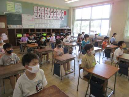 今日は、1学期の終業式でした。3年生教室では、真剣に式に臨む子供たちの姿が見られました。これまで、「ジャンプアップ!」を目指して学習や運動に一生懸命取り組んできた子供たち。夏休みにもいろいろなことにチャレンジし、ますます「ジャンプアップ!」していってほしいと思います。