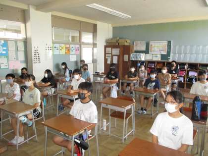 6年生 終業式 公開日 2021/08/17 更新日 2021/08/17 第6学年 終業式が行われ、1学期のまとめをしました。最高学年としての生活がスタートした4月から7月までの4か月間、一人一人が『Action〜アクション〜』をめあてにしながら、日々の学習や学校行事に取り組んできました。終業式で自分の取組を真剣に振り返る姿も逞しくなり、子供たちの成長を感じます。小学校生活最後の夏休みを精一杯楽しみ、2学期にまた元気に登校してほしいと思います。
