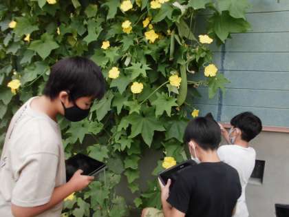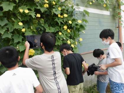 5年生 ヘチマの花のつくりを調べよう! 公開日 2021/09/01 更新日 2021/09/01 第5学年 理科の学習の様子です。ヘチマの花を実際に見に行きました。そして、クロムブックを使って一人一人花の撮影をしました。 教室に帰り写真をチェックしてみると、花の特徴が見えてきました。花のつくりについての学習を続けていきます。