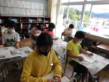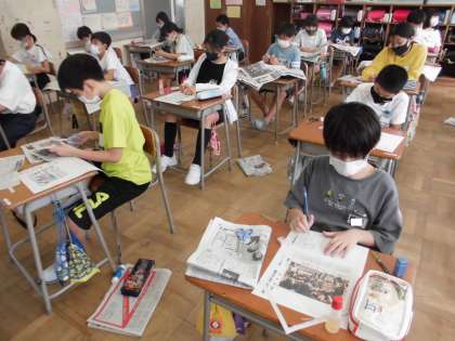 5年生 新聞を読もう! 公開日 2021/09/06 更新日 2021/09/06 第5学年 国語科の学習の様子です。まずは、新聞の構成について考えました。読者が読みたくなるような見出しが付けられていることに気付きました。 その後、新聞を読み、心が温かくなる記事を見付ける活動を行いました。