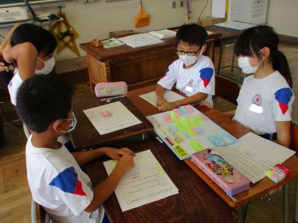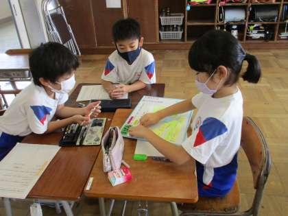 3年生「学習をがんばっています!」 公開日 2021/09/13 更新日 2021/09/13 第3学年 3年生は、毎日「ジャンプアップ!」を目指して学習をがんばっています。 理科では、クロムブックのカメラを使って、昆虫などの動物を探しにいったり、国語科では、ホワイトボードを使ってグループで話合いをしたりと、意欲的に取り組んでいます。