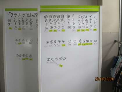 6年生教室前には、ホワイトボードに学習発表会の劇の配役がネームプレートで位置付けてありました。まだ決定してはいないようで今後オーディションを行って決定していくとのことでした。どの学年も、学習発表会に向けて始動しています。