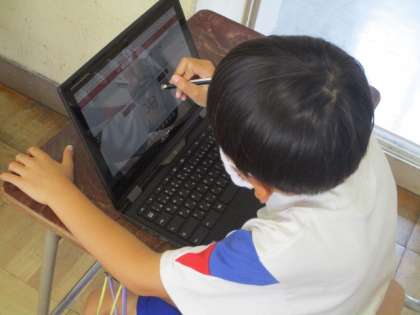スマイルネクストドリルでは、タッチペンを用いて漢字を書いたり、計算問題に取り組んだりすることで、これまでの学習の復習を自分のペースで進めることができます。