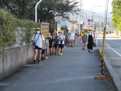 今日で9月も終わりです。登校時は風が強く、安全帽子を手にもって登校する子供も多く見られました。