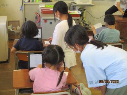 1年生は、朝活動のスキルタイムを使って、グーグルアカウントのパスワード変更を行いました。パスワードを考えるに当たって、ご家庭でのご協力、ありがとうございました。1年生のパスワード変更は、事前に変更作業を終えた6年生が手伝い、みんなスムーズに終えられたようです。どの学年も今週中に変更する予定です。