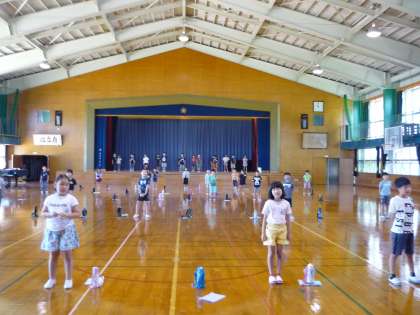 歌の練習をしている2年生。初めて体育館での練習をしました。
