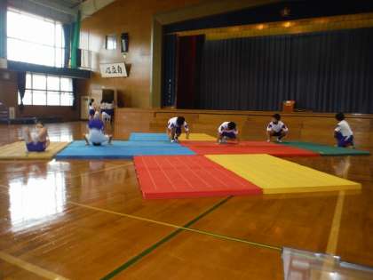 今年の学習発表会では、器械体操を中心に発表を行います。縄跳び・跳び箱運動・マット運動といろいろな動きにチャレンジします。苦手な動きもありますが、できるようになるために練習に励んでいます。マット運動では集団による動きを意識して練習しています。本番が近づいてきて、子供たちの気持ちも高まってきています。よりよい発表にしようとがんばっている子供たちの表情はとてもいきいきとしていました。本番に向けて、安全に気を付けながら子供たちと共にがんばりたいと思います。