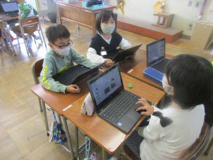3年生「クロムブックを使って学習のまとめをしました!」 公開日 2021/10/26 更新日 2021/10/26 第3学年 社会科「店ではたらく人」では、スーパーマーケットの様々な工夫について調べたり話し合ったりしながら学習を進めてきました。そして、最後に学習で学んだことをクロムブックを使ってスライドにまとめました。 今日は、そのスライドをグループで発表し合いました。自分の学習してきたことをスライドを見ながら発表したり、感想を伝え合ったりしながら、学習を進めることができました。