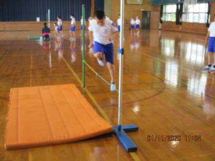 4年生は、走り高跳びの学習です。助走から踏み切りのリズムをみんなで声を出して確認しながら跳んでいました。このときは、リズムをつかむことを目当てに50センチメートルほどの高さでした。練習でどこまで記録をのばせるでしょうか。