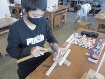 4年生 ギコギコトントンクリエイター 公開日 2021/11/05 更新日 2021/11/05 第4学年 のこぎりやげんのうを使った作品づくりも、もう少しで完成です。一人一人が発想豊かな作品をつくっています。