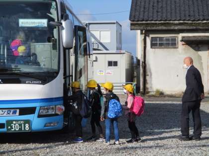 本日もこの時期にしてはよい天気です。今日は、2年生が校外学習で魚津方面に出かけました。バスに乗車するときには、運転手さんに「おはようございます」「よろしくお願いします」と元気に挨拶する子供たちでした。今週は、火曜日、木曜日、金曜日と校外学習が続きましたが、どの日も天候に恵まれよかったです。