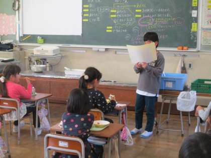 写真は、給食時間に委員会からのお知らせをしている様子です。これから各委員会主催の催しが次々と予定されています。