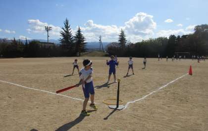 3年生「気持ちのよい秋空の下で♪−体育科の学習− 公開日 2021/11/05 更新日 2021/11/05 第3学年 3年生は、体育科の学習で、「ティーボール」をしています。今日は、1組と2組合同で、試合を行いました。 守備では、団のみんなと協力しながらアウトを取ります。攻撃では、ボールをよく見て、打つことを目標に取り組んでいます。これから、さらに練習を重ね、団で作戦を考えながら、レベルアップしていきたいと思います。