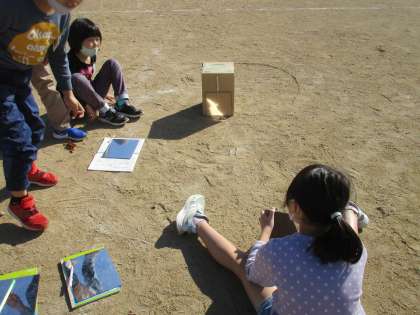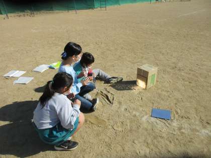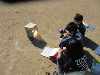3年生「理科の学習!1組」 公開日 2021/11/05 更新日 2021/11/05 第3学年 今日の理科の時間に、鏡ではね返した日光が当たったところの温度と明るさを調べました。グループで協力しながら、鏡が0枚のとき、1枚のとき、3枚のときについて調べました。子供たちは、自分の予想と同じになるかどうか、興味津々で実験に取り組んでいました。