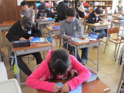 5年生は、家庭科の裁縫、小物づくりに取り組んでいました。縫い目の大きさに気を付け、刺繍をしたり、縫い糸の色を変えたり、工夫する子供たちが多くいました。