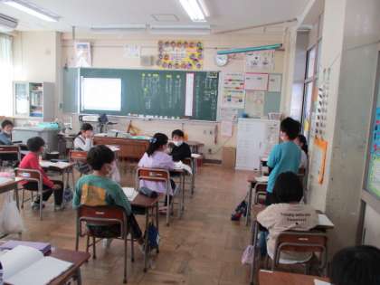 3年生は、国語科で話合いをしているところです。発表する友達にしっかり体を向けて聞いている姿が素敵でした。