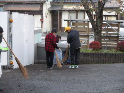 日に日に秋が深まり、校舎前の桜の木に残る葉もわずかになりました。落ち葉は、毎朝、美化委員会児童が掃き集めてくれています。