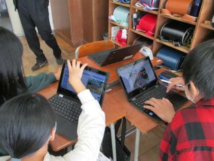 現在、6年生は、総合的な学習の時間に、ゲームを作るプログラミングに取り組んでいます。ゲームの中のキャラクターたちが自分の思い描く動きをするためにはどのようなプログラムを組まなければいけないのか、友達と見合いアドバイスし合って、完成を目指しています。