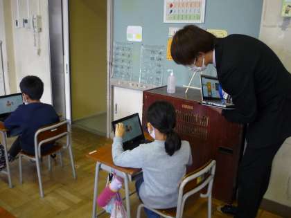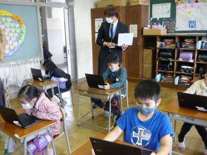 ICT支援員の先生に来ていただき、クロムブックで楽しい学習を教えてもらいました。