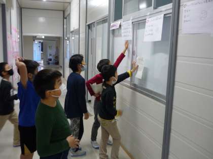 2年生 クイズに挑戦! 公開日 2021/11/16 更新日 2021/11/16 第2学年 給食委員会から食べ物に関するクイズラリーが企画されています。 「何だろう?」、「これかな?」と選択肢の中から答えを選んでいました。