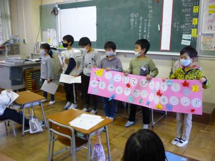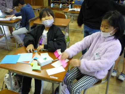 いよいよ、来週、1年生を招待することとなります。折り紙で作った景品を用意したり、1年生教室へお知らせにいったりと準備万端です!
