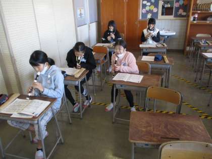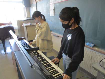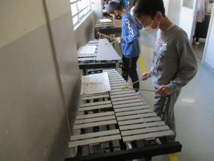 音楽の授業では合奏に向けて全員が一生懸命練習していました。