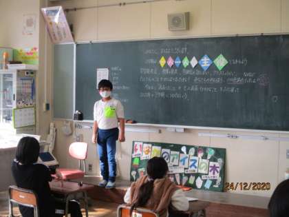 終業式後は、各学級で担任が子供たち一人一人に、2学期がんばったことを伝えながら、あゆみを渡していました。また、子供同士、がんばったことを伝え合っている学級もありました。