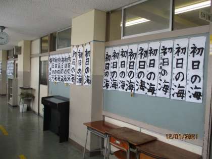 各学年、廊下には書き初め大会の作品が掲示してあります。昨日放課後、教員による審査を行い各学年8〜10名の金賞作品を選出しました。惜しくも金賞とならなくても、冬休み中の練習で上達が分かる子供もたくさんいます。