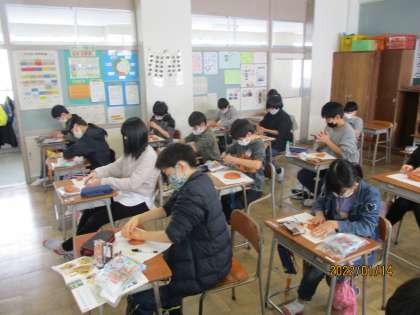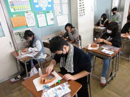 図画工作科で「水の流れのように」の作品づくりをしています。粘土を使って水の流れる様子を思い思いに表現しています。