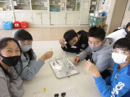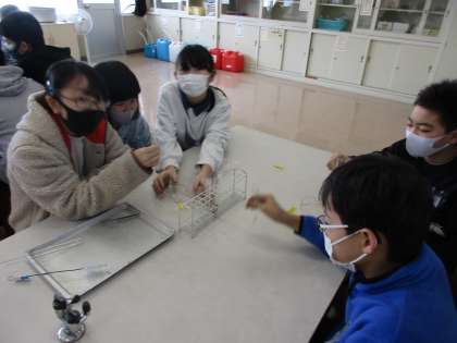 6年生 水溶液の性質を調べよう 公開日 2022/01/25 更新日 2022/01/25 第6学年 理科の学習で水溶液の性質を調べる実験を行いました。アルミニウムや鉄に塩酸を注いだときの様子から、金属を溶かすはたらきがあることを確かめました。