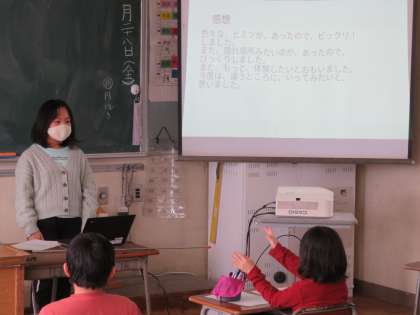 3年生 月岡のゆるゆる遺産を発表 公開日 2022/01/28 更新日 2022/01/28 第3学年 総合的な学習では、2学期に見つけた月岡のすてきの発表をしました。調べたことをまとめたスライドを映し出しながら、月岡の魅力を一生懸命伝えている子供たちです。