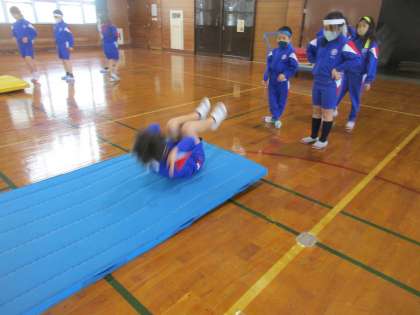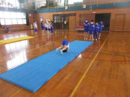 3年生 マット運動 公開日 2022/01/28 更新日 2022/01/28 第3学年 体育科の学習では、マット運動をしています。子供たちは、去年よりもできることを増やそうと、いろいろな技に挑戦しながら頑張っています。