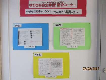 渡り廊下には、自主学習のがんばりが掲示されています。3学期に入り、自主学習に上手に取り組むことができるようになった子供たちがたくさんいます。1年間の成長です。