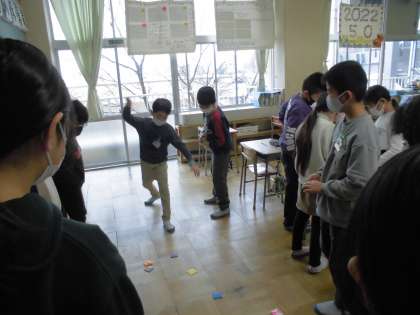 4年 体を使った遊び 公開日 2022/02/10 更新日 2022/02/10 第4学年 体を使った遊びとして、手作りめんこを用意してくれた人がいました。肩を使ってめんこをたたくと、よい音がします。のびのびタイムは、めんこ遊びに取り組む子供たちでにぎわっています。