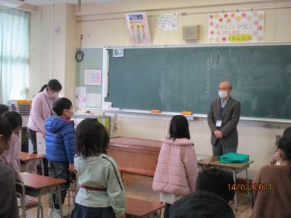 この1年間、子供たちはたくさんの方々にいろいろな場でお世話になりました。そこで、感謝の気持ちを伝えるお手紙を書く活動に取り組みました。お話ミッケ!の会の方々には各学級で、スクールサポートスタッフの方々には6年生の代表の子供が、それぞれお手紙を渡しました。また、防犯パトロール隊の方々には、地域の回覧板をとおして感謝の気持ちを伝えることになりました。そして、今年度は、新校舎を建ててくださっている工事関係の皆さんへも5年生の代表の子供がお手紙を渡す予定になっています。
