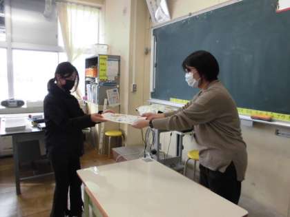 5年生 感謝の気持ちを込めて 公開日 2022/02/15 更新日 2022/02/15 第5学年 お話ミッケの会の今年度最終日でした。 毎回魅力あふれる本を紹介していただいたこと、朝の時間がすばらしい時間になったこと等、感謝の気持ちを言葉と手紙で伝えました。 本当にありがとうございました。