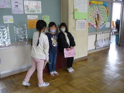 2年生 準備開始! 公開日 2022/02/16 更新日 2022/02/16 第2学年 来月の「卒業を祝う集会」に向けて、準備を始めました。 2年生は、クイズを出題します。問題を出す練習をしたり、6年生の先生に質問したりと自分のするべきことを考えて行動していました。6年生のためにがんばる姿が、とても素敵でした。