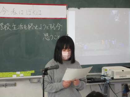 6年生 スピーチ「今、私は、ぼくは」 公開日 2022/02/19 更新日 2022/02/19 第6学年 小学校生活を終えようとする今、思うことや考えることについてスピーチしました。みんな月岡小学校での6年間を振り返りながら、思い出や夢についてしっかりと伝えることができました。子供たちは、家でもスピーチをする予定です。是非、思いの詰まったスピーチを聞いてあげてください。