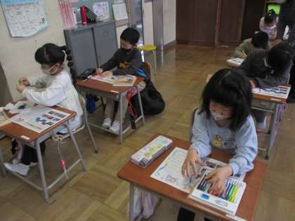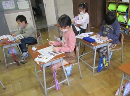 4月から月岡小学校に入学する年長さんへのお手紙を書きました。心を込めて1文字ずつ丁寧に書き、色を塗りました。子供たちが真剣に手紙を書く様子から、もうすぐ2年生になるのだということを感じました。